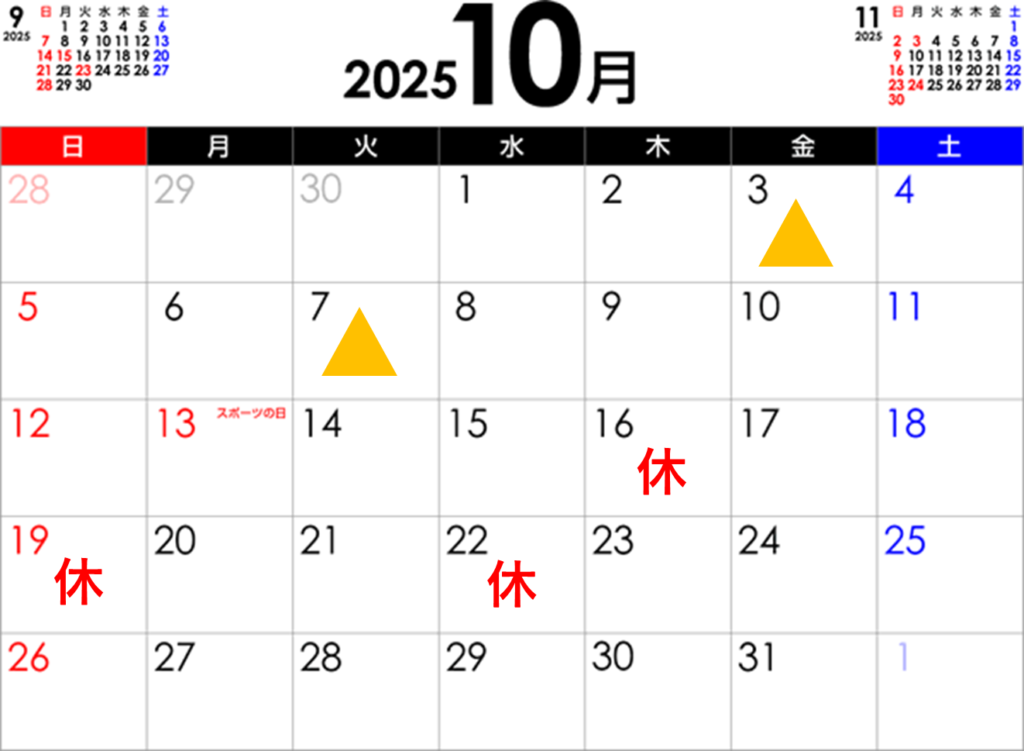 10月7日(火)午後からお休み(12時までご予約可能)10月16日(木)終日お休み